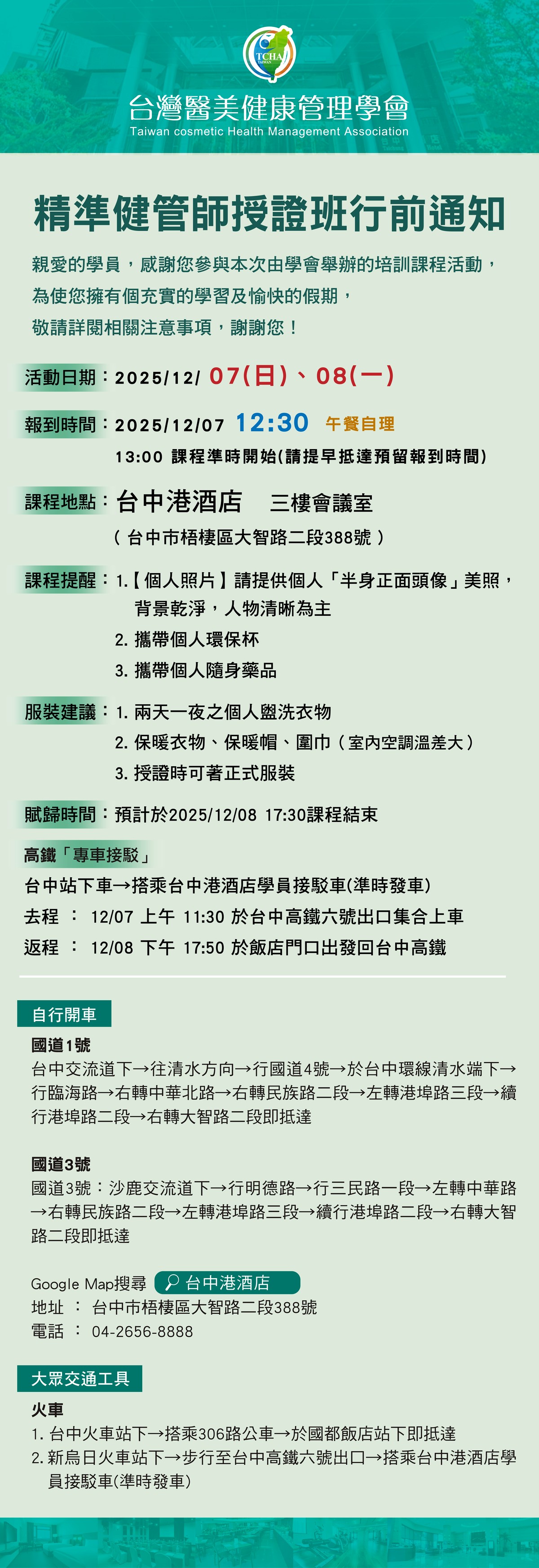 「第二十五期」精準健管師培訓認證班-行前通知